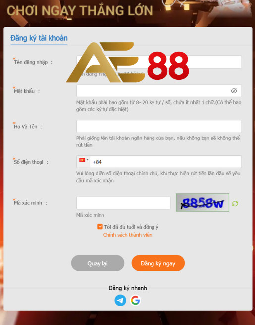Miễn Phí Khi Đăng Ký Tạo Tài Khoản Trên Hệ Thống AE88