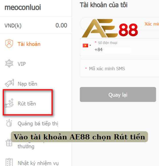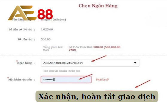 - Bước 3: Nhấn xác nhận Rút tiền để hệ thống AE88 tiến hành xử lý