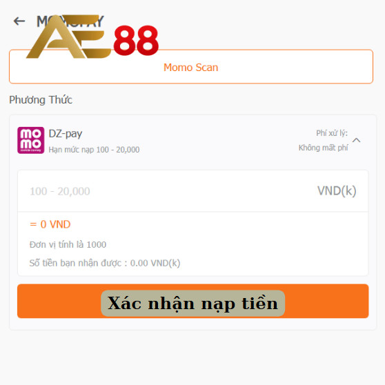 - Bước 5: Xác nhận hoàn tất nạp tiền để hệ thống xử lý, tiền sẽ tự động cộng vào tài khoản AE88 của bạn trong vòng 1–5 phút.